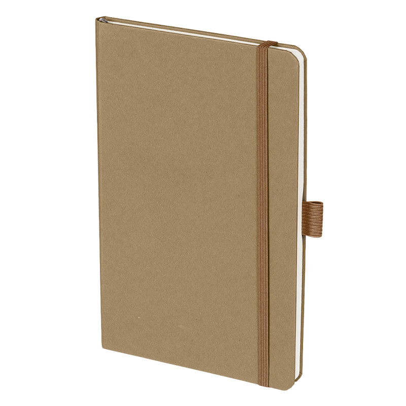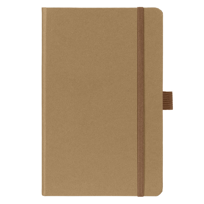 Notes formata A5 sa zaobljenim ivicama, elastičnom trakom i držačem za olovku, namenjen promotivnim projektima sa fokusom na održive materijale. Korica je izrađena od mešavine bio materijala i papira renomiranog italijanskog proizvođača papira FAVINI, dok je unutrašnji knjižni blok proizveden od recikliranog papira. Knjižni blok u linije sa 160 strana krem papira gramature 70 g/m² omogućava kvalitetno i prijatno pisanje u svakodnevnoj upotrebi.