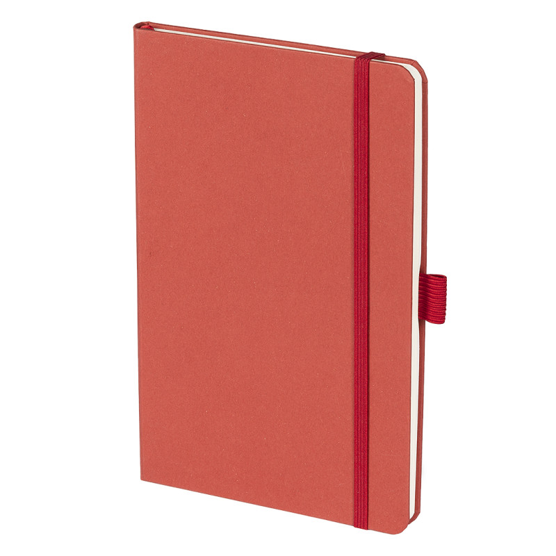 Notes formata A5 sa zaobljenim ivicama, elastičnom trakom i držačem za olovku, namenjen promotivnim projektima sa fokusom na održive materijale. Korica je izrađena od mešavine bio materijala i papira renomiranog italijanskog proizvođača papira FAVINI, dok je unutrašnji knjižni blok proizveden od recikliranog papira. Knjižni blok u linije sa 160 strana krem papira gramature 70 g/m² omogućava kvalitetno i prijatno pisanje u svakodnevnoj upotrebi. Ključne karakteristike: Notes • Format A5 • 160 strana • Knjižni blok u linije • Krem papir 70 g/m² • Knjižni blok od recikliranog papira • Korica od bio materijala i papira (FAVINI) • Zaobljene ivice • Elastična traka • Držač za olovku
