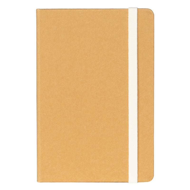 Notes • Format A5 • 160 strana • Knjižni blok u linije • Krem papir 80 g/m² • Knjižni blok od recikliranog papira • Korica od perivog papira (washed kraft) • Zaobljene ivice • Elastična traka