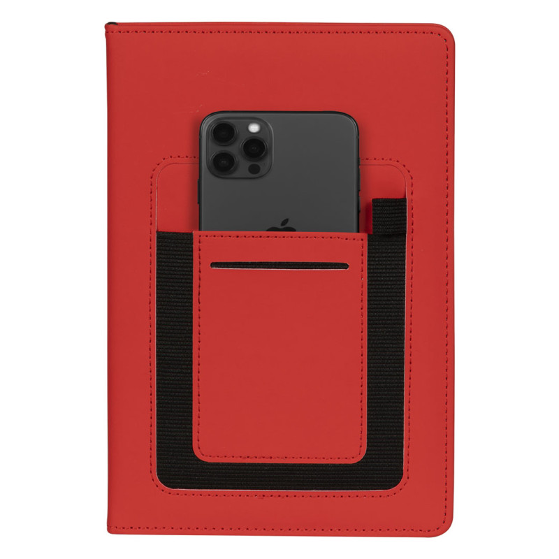 Notes formata A5 sa zaobljenim ivicama, dizajniran kao funkcionalan promotivni proizvod za savremenu poslovnu svakodnevicu. Opremljen je držačem za olovku i praktičnim džepovima na spoljašnjoj strani prednje korice, uključujući džep za mobilni telefon i džep za kartice. Knjižni blok u linije sa 160 strana krem papira omogućava uredno i pregledno beleženje, što ga čini pogodnim za sastanke, konferencije i promotivne kampanje. Ključne karakteristike: Notes • Format A5 • 160 strana • Knjižni blok u linije • Krem papir 70 g/m² • Zaobljene ivice • Držač za olovku • Džep za mobilni telefon • Džep za kartice • Džepovi na spoljašnjoj strani prednje korice
