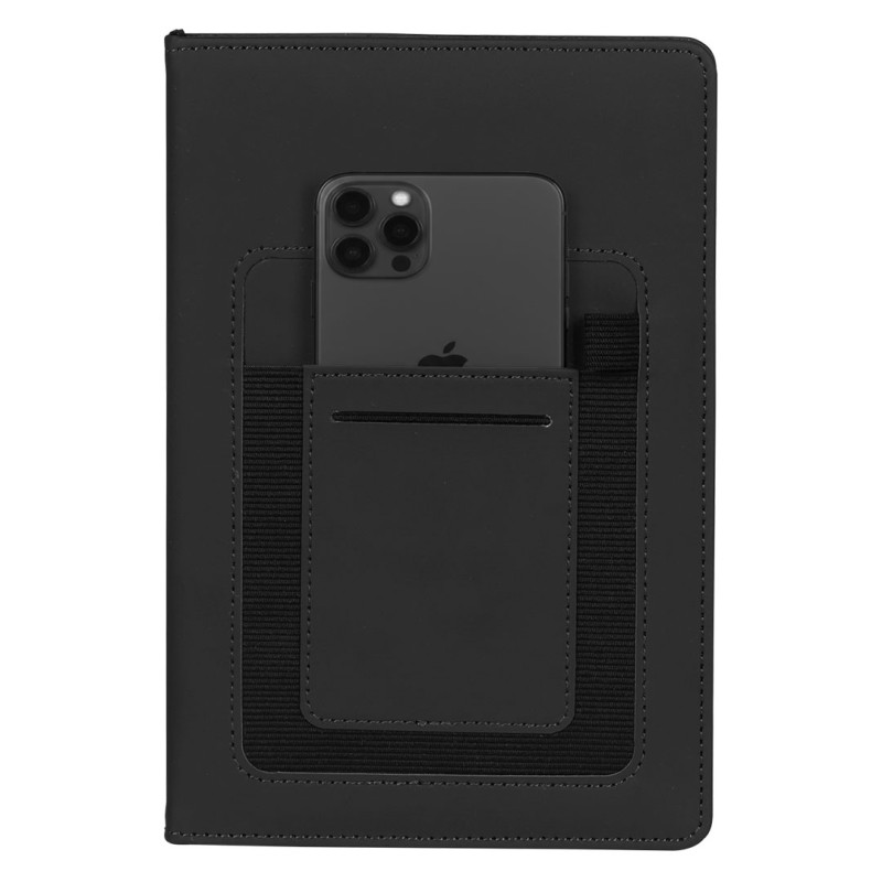 Notes formata A5 sa zaobljenim ivicama, dizajniran kao funkcionalan promotivni proizvod za savremenu poslovnu svakodnevicu. Opremljen je držačem za olovku i praktičnim džepovima na spoljašnjoj strani prednje korice, uključujući džep za mobilni telefon i džep za kartice. Knjižni blok u linije sa 160 strana krem papira omogućava uredno i pregledno beleženje, što ga čini pogodnim za sastanke, konferencije i promotivne kampanje. Ključne karakteristike: Notes • Format A5 • 160 strana • Knjižni blok u linije • Krem papir 70 g/m² • Zaobljene ivice • Držač za olovku • Džep za mobilni telefon • Džep za kartice • Džepovi na spoljašnjoj strani prednje korice