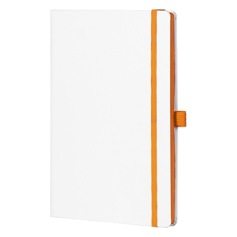 Notes formata A5 sa zaobljenim ivicama i funkcionalnim detaljima, prilagođen promotivnoj i poslovnoj primeni. Bojena ivica knjižnog bloka i bojeni predlist u boji elastične trake doprinose skladnom i profesionalnom izgledu. Opremljen je elastičnom trakom i držačem za olovku, dok knjižni blok u linije sa belim papirom omogućava uredno beleženje svakodnevnih informacija. Proizveden u Evropi, idealan je za brendiranje i dugoročnu upotrebu. Ključne karakteristike: Notes • Format A5 • 160 strana • Knjižni blok u linije • Beli papir 80 g/m² • Zaobljene ivice • Bojena ivica knjižnog bloka u boji elastične trake • Bojeni predlist u boji elastične trake • Elastična traka • Držač za olovku • Proizvedeno u Evropi