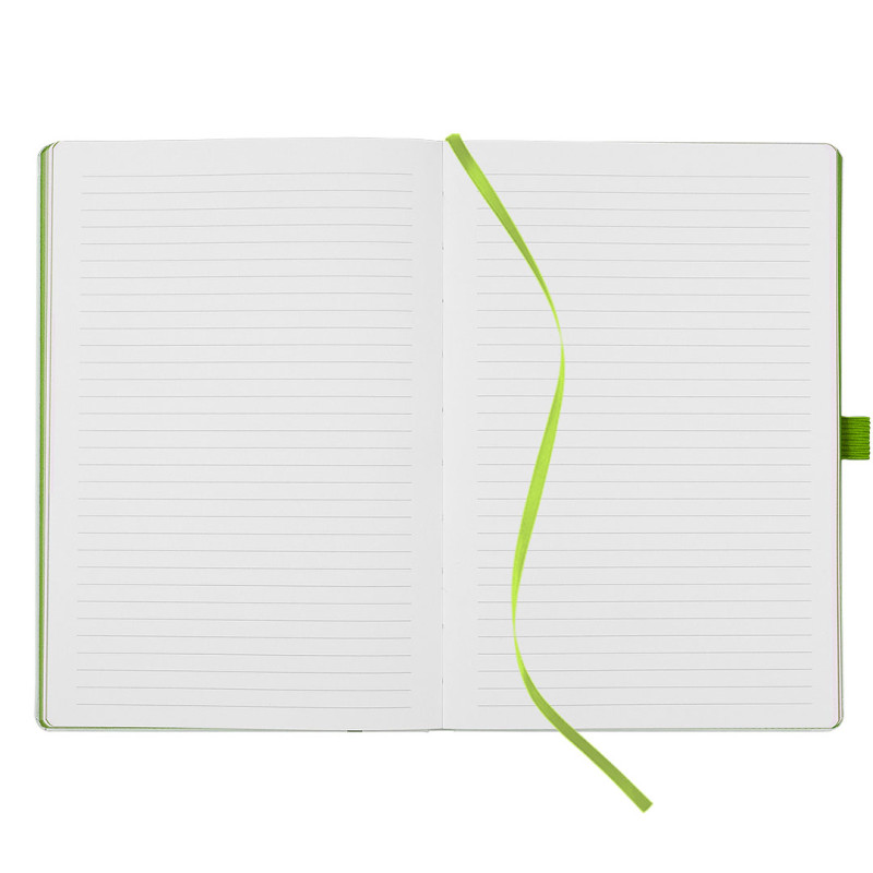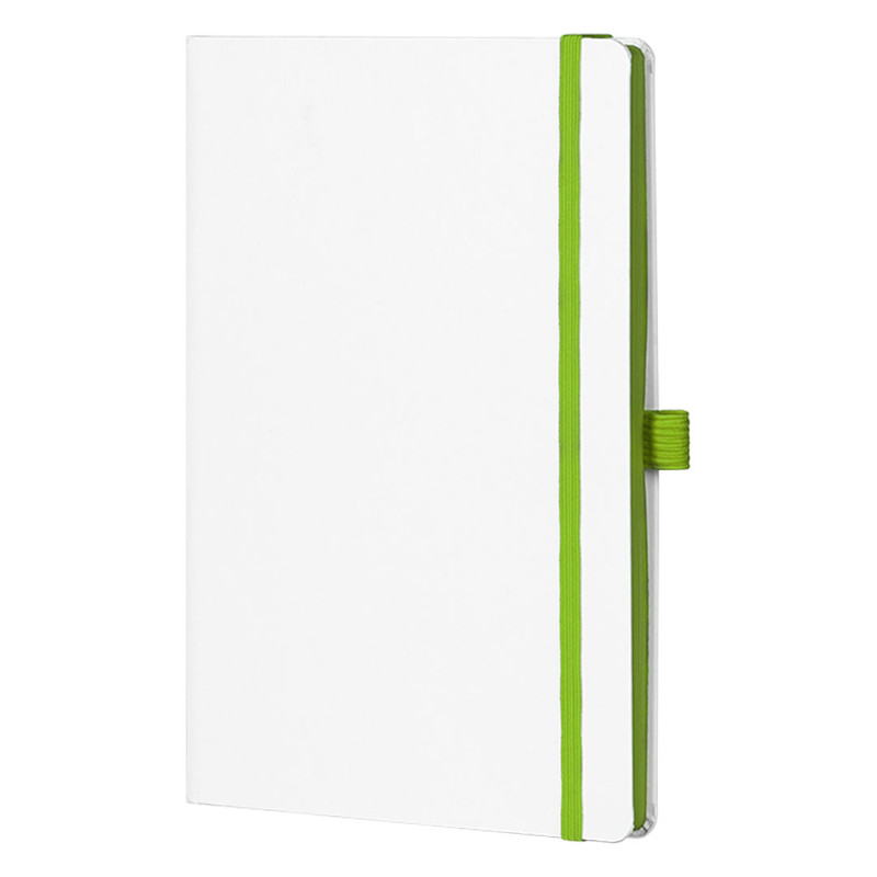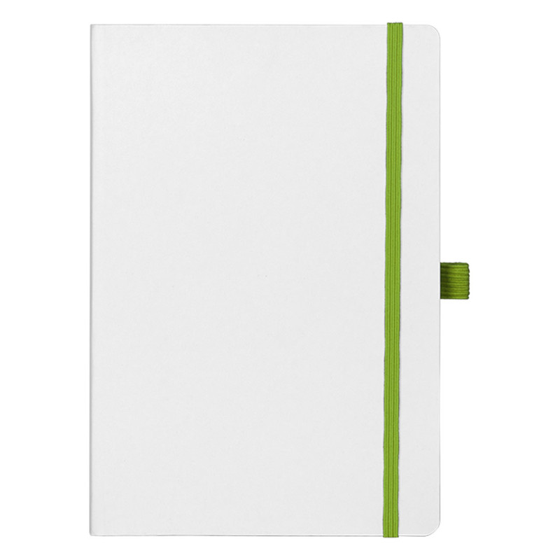 Notes formata A5 sa zaobljenim ivicama i funkcionalnim detaljima, prilagođen promotivnoj i poslovnoj primeni. Bojena ivica knjižnog bloka i bojeni predlist u boji elastične trake doprinose skladnom i profesionalnom izgledu. Opremljen je elastičnom trakom i držačem za olovku, dok knjižni blok u linije sa belim papirom omogućava uredno beleženje svakodnevnih informacija. Proizveden u Evropi, idealan je za brendiranje i dugoročnu upotrebu. Ključne karakteristike: Notes • Format A5 • 160 strana • Knjižni blok u linije • Beli papir 80 g/m² • Zaobljene ivice • Bojena ivica knjižnog bloka u boji elastične trake • Bojeni predlist u boji elastične trake • Elastična traka • Držač za olovku • Proizvedeno u Evropi