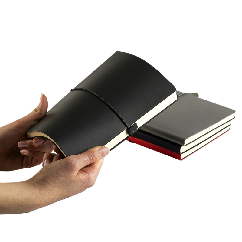 Notes formata A5 sa fleksibilnom koricom i zaobljenim ivicama, namenjen svakodnevnoj poslovnoj i promotivnoj upotrebi. Savitljiva korica omogućava lako nošenje, dok elastična gumica sa dodatkom za povlačenje doprinosi praktičnom i sigurnom zatvaranju notesa. Knjižni blok u linije sa 192 strane krem papira gramature 80 g/m² pruža dovoljno prostora za beleške, planiranje i sastanke. Proizveden u Evropi. Ključne karakteristike: Notes • Format A5 • 192 strane • Knjižni blok u linije • Krem papir 80 g/m² • Fleksibilna korica od termoosetljive eko kože • Zaobljene ivice • Elastična gumica sa dodatkom za povlačenje • Proizvedeno u Evropi