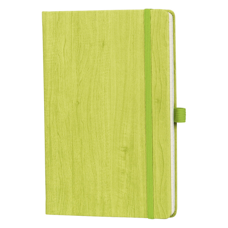 Notes formata A5 sa zaobljenim ivicama, namenjen poslovnoj i promotivnoj upotrebi. Opremljen je elastičnom trakom i držačem za olovku, dok Korica od skaja sa teksturom drveta daje notesa prepoznatljiv i prirodan vizuelni efekat. Knjižni blok u linije sa 192 strane krem papira gramature 80 g/m² omogućava uredno i prijatno pisanje. Proizveden u Evropi. Ključne karakteristike: Notes • Format A5 • 192 strane • Knjižni blok u linije • Krem papir 80 g/m² • Korica od termoosetljive eko kože sa teksturom drveta • Zaobljene ivice • Elastična traka • Držač za olovku • Proizvedeno u Evropi