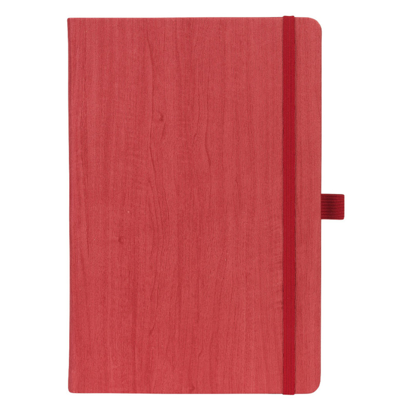 Notes formata A5 sa zaobljenim ivicama, namenjen poslovnoj i promotivnoj upotrebi. Opremljen je elastičnom trakom i držačem za olovku, dok Korica od skaja sa teksturom drveta daje notesa prepoznatljiv i prirodan vizuelni efekat. Knjižni blok u linije sa 192 strane krem papira gramature 80 g/m² omogućava uredno i prijatno pisanje. Proizveden u Evropi. Ključne karakteristike: Notes • Format A5 • 192 strane • Knjižni blok u linije • Krem papir 80 g/m² • Korica od termoosetljive eko kože sa teksturom drveta • Zaobljene ivice • Elastična traka • Držač za olovku • Proizvedeno u Evropi
