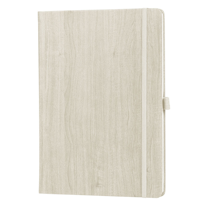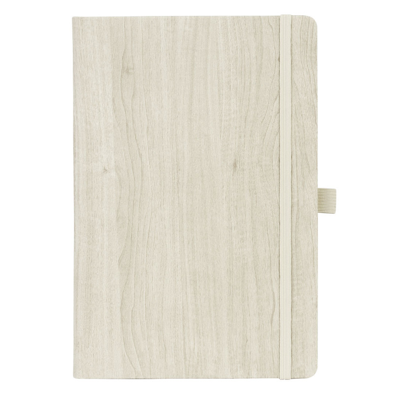 Notes • Format B5 • 192 strane • Knjižni blok u linije • Krem papir 80 g/m² • Korica od termoosetljive eko kože sa teksturom drveta • Zaobljene ivice • Elastična traka • Držač za olovku • Proizvedeno u Evropi