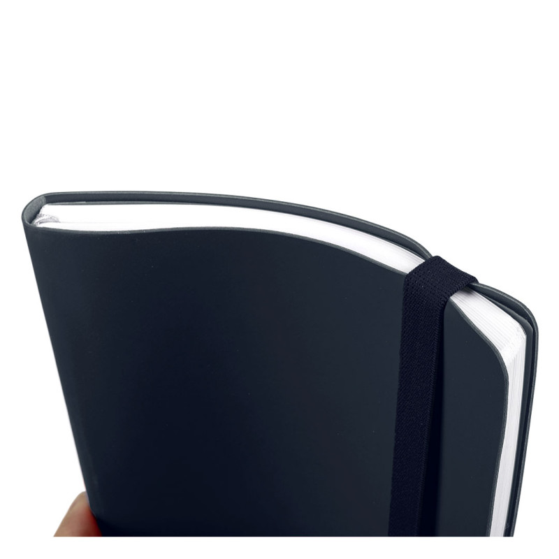 Notes formata A5 sa fleksibilnom gumiranom koricom i zaobljenim ivicama, prilagođen intenzivnoj svakodnevnoj upotrebi. Opremljen je elastičnom trakom i džepom na unutrašnjoj strani zadnje Korica, što omogućava praktičnu organizaciju dokumenata. Soft-touch završnica Korica obezbeđuje prijatan osećaj pri korišćenju. Knjižni blok u linije sa 192 strane belog papira gramature 80 g/m² pogodan je za poslovne beleške i promotivne namene. Proizveden u Evropi. Ključne karakteristike: Notes • Format A5 • 192 strane • Knjižni blok u linije • Beli papir 80 g/m² • Fleksibilna gumirana korica od termoosetljive eko kože (soft touch) • Zaobljene ivice • Elastična traka • Džep na unutrašnjoj strani zadnje Korica • Proizvedeno u Evropi