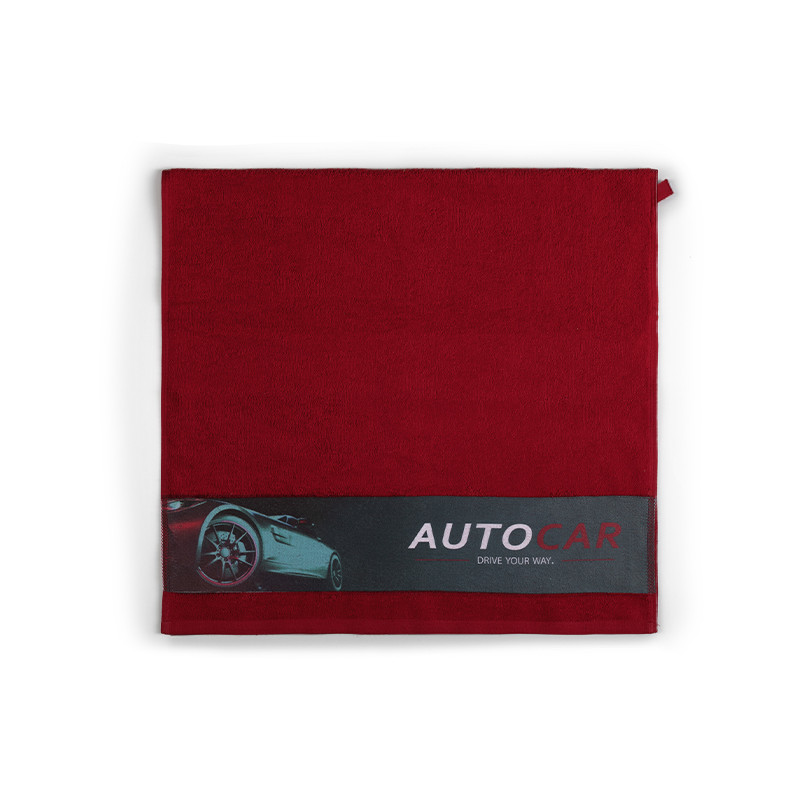 Peškir, 380 g/m2, bordura za brendiranje širine 10 cm i zakačka od pamučne trake u boji peškira