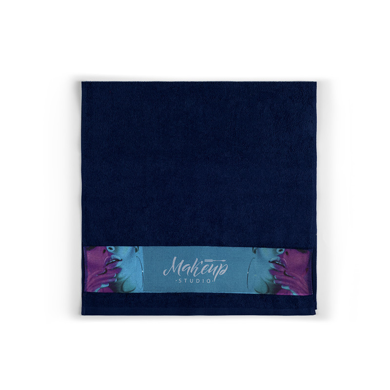Peškir, 380 g/m2, bordura za brendiranje širine 10 cm i zakačka od pamučne trake u boji peškira