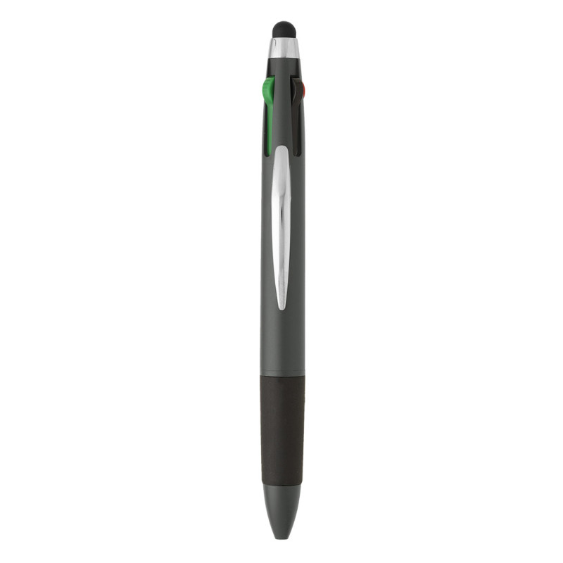 MaterijalABS • TC kuglica 0,7 mm • Mastilo u četiri boje (plavo, crveno, crno, zeleno) • Vrh za ekrane osetljive na dodir • Metalik završna obrada • Idealna za poslovnu i promotivnu upotrebu Boja mastila: plava, crvena, crna i zelena
