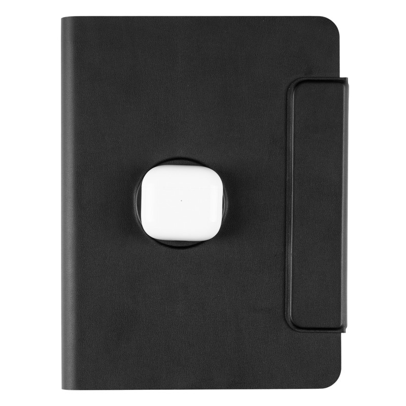 Poslovni portfolio sa notesom • Format notesa: A5 • 128 strana • Krem papir • Materijal: reciklirana eko-koža • Ugrađena pomoćna baterija: 5.000 mAh • Bežični punjač sa magnetom za telefon i slušalice • Type-C port • Type-C kabl • Magnetni zatvarač • Poklon pakovanje • Idealan za poslovne i promotivne namene