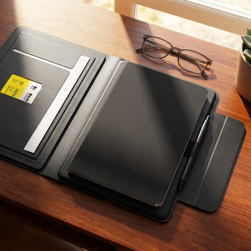 predlist sa poljima za upisivanje ličnih podataka, držač za olovku, džepovi za kartice i dokumentaciju, kabal Type-C/Type-C, bežično punjenje