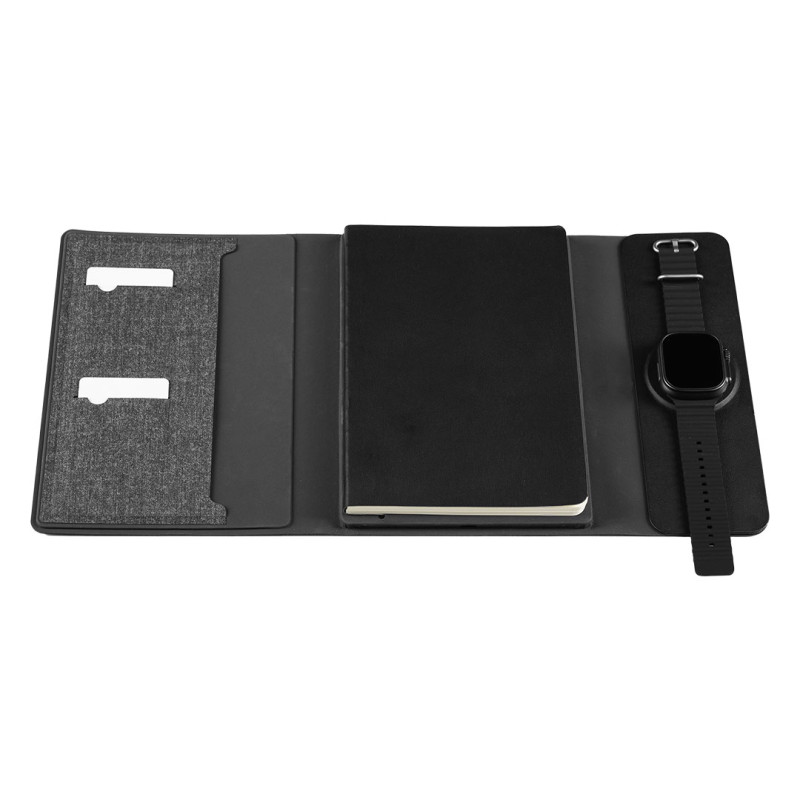 Portfolio sa notesom A5, pomoćnom baterijom 5.000 mAh, bežičnim punjačem za tri uređaja i magnetom