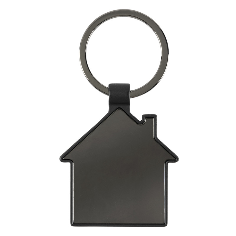 Privezak za ključeve • Legura cinka • Oblik kuće • Tamno-metalna pločica sa efektom ogledala • Reljefna poleđina sa vertikalnim linijama • Simboličan dizajn • Pakovan u poklon koverti
