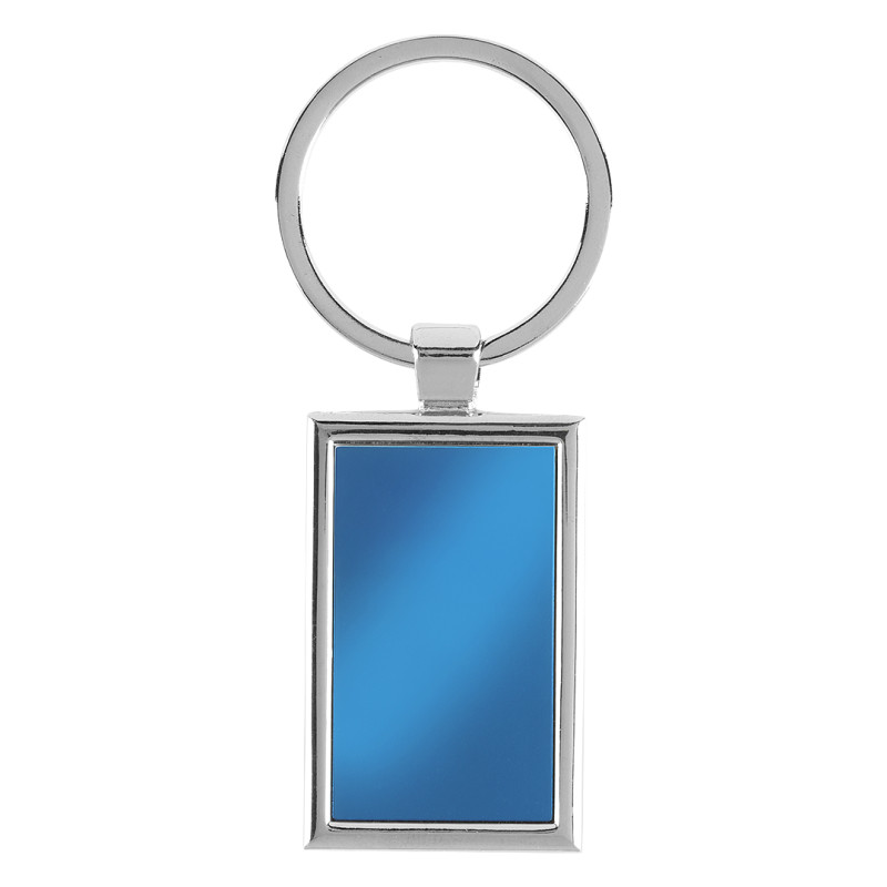 Metalni privezak za ključeve pravougaonog oblika sa obojenom pločicom na prednjoj strani. Jednostavan, ali efektan dizajn omogućava lako uklapanje uz različite stilove, čineći ga praktičnim promotivnim proizvodom za široku namenu.