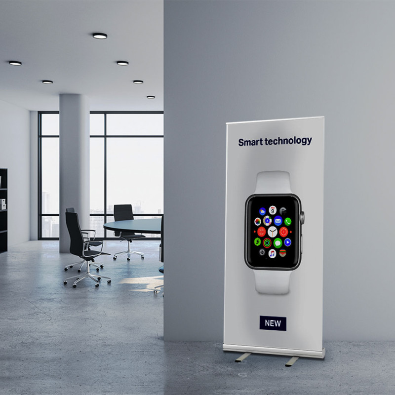 Aluminijumski pano sa mehanizmom za samouvlačenje (bez platna za štampu), upakovano u zaštitnu futrolu