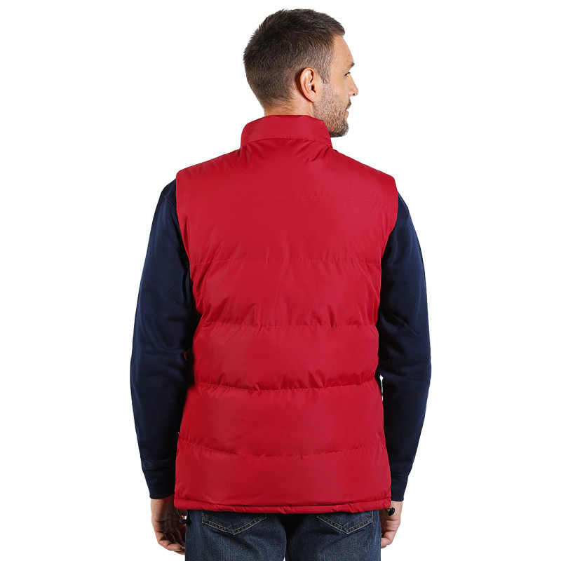 Prsluk, visoka kragna, štepani sa dva prednja džepa, skriveni unutrašnji rajsferšlus na leđima za lakši pristup prilikom štampanja