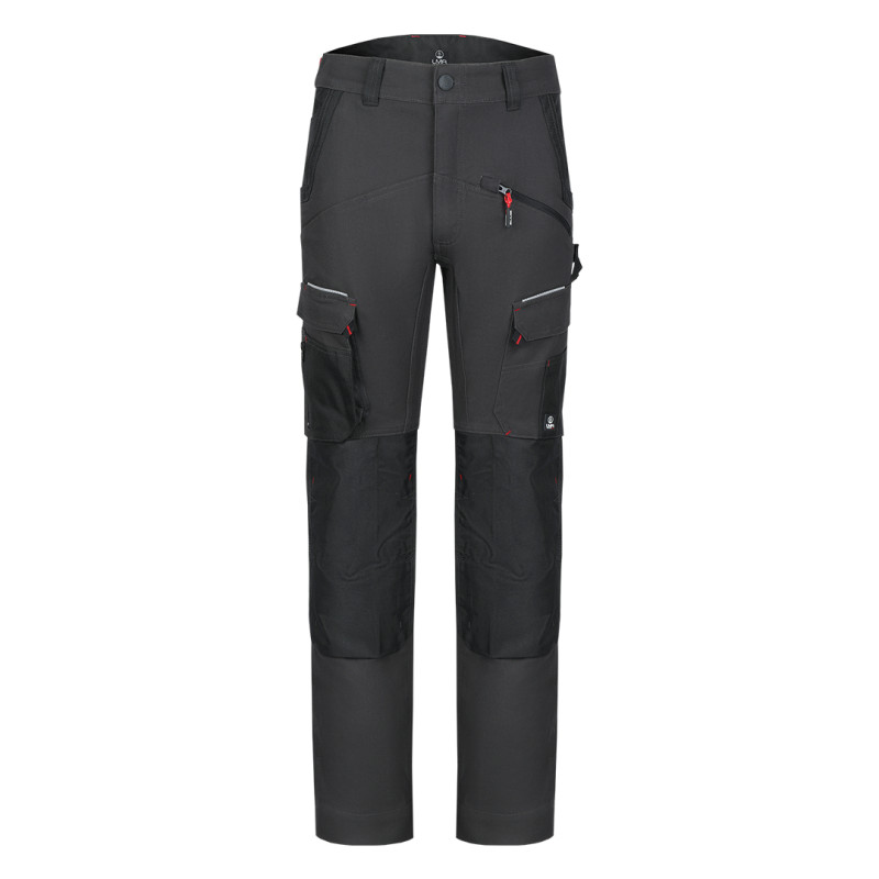 Pantalone, 300g/m2 platno prepletaj, ojačanja od 900D poliestera na mestima izloženim većem habanju (džepovi, kolena), džepovi za umetanje štitnika za kolena, tri prednja džepa (jedan sa rajsferšlusom), dva pozadi i dva džepa sa strane, reflektivni detalji, praktični odeljci za alat, gajka za čekić, pojas sa čičak trakom za podešavanje širine u struku za dodatnu udobnost, trostruki štepovi kao ojačanje