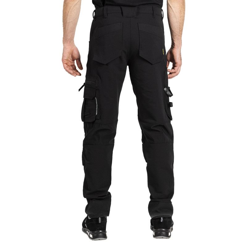 Radne pantalone PERFORMANCE izrađene su u premium kvalitetu, namenjene zahtevnim radnim uslovima u kojima su potrebni izdržljivost, ergonomija i sloboda pokreta tokom celodnevnog rada. Izrađene su od visokokvalitetnog 4-way stretch materijala veće gramature, koji obezbeđuje stabilnost, dug vek trajanja i pouzdan komfor pri intenzivnoj upotrebi. Konstrukcija pantalona zasniva se na kombinaciji više tehničkih materijala, raspoređenih prema zonama pokreta, opterećenja i ventilacije, čime se postiže optimalan balans između fleksibilnosti i otpornosti. Osnovni materijal omogućava stabilno kretanje, dok su kolena dodatno ojačana CORDURA® materijalom radi povećane otpornosti na habanje. Zadnji delovi nogavica su dodatno ojačani, a mrežasti panel na zadnjoj strani kolena olakšava savijanje i poboljšava ventilaciju. Funkcionalan raspored džepova, trostruko ojačani šavovi i YKK rajsferšlusi obezbeđuju pouzdano i dugotrajno korišćenje u zahtevnim radnim uslovima. Ključne karakteristike: Radne pantalone • 93% poliamid / 7% elastin • 295 g/m² • 4-way stretch materijal • Premium kvalitet izrade • Zone prilagođene pokretu i opterećenju • CORDURA® ojačanja na kolenima • Ojačani zadnji delovi nogavica • Ventilacioni mrežasti panel iza kolena • Višestruki funkcionalni džepovi • D-prsten za dodatnu opremu • YKK rajsferšlusi • Trostruko ojačani šavovi • Reflektivni detalji