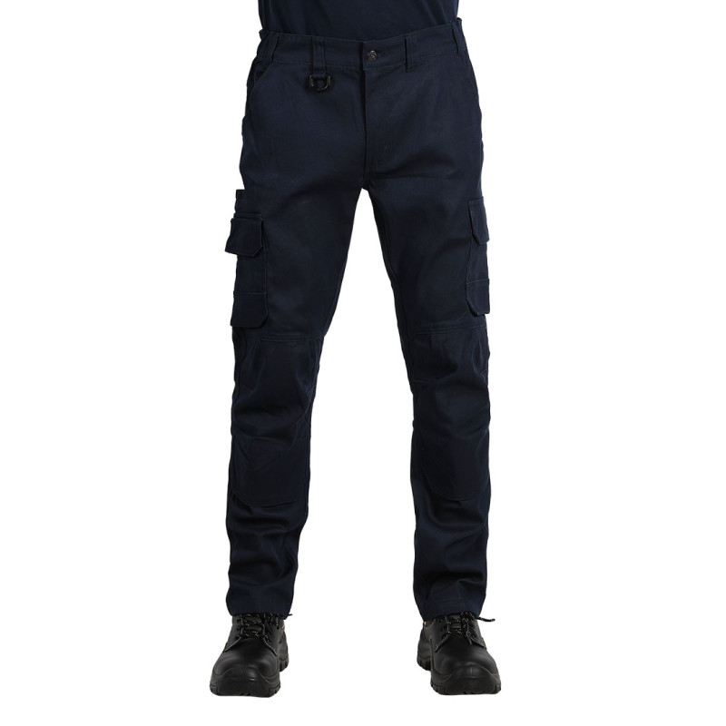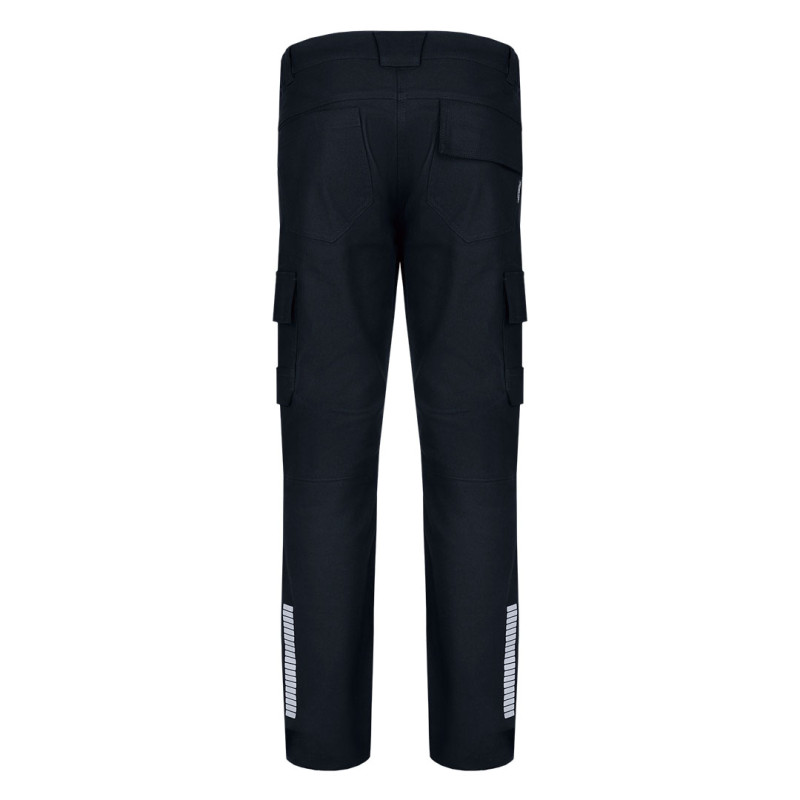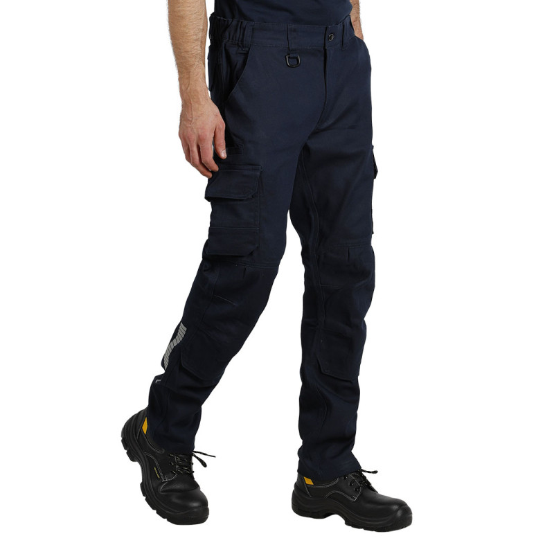 Radne pantalone • Tkanina: keper • Gramatura: 295 g/m² • Sirovinski sastav: 68% pamuk, 30% poliester, 2% elastin • Dva prednja, dva zadnja i dva bočna džepa • D-prsten za alat • Džepovi za štitnike za kolena • Reflektivna štampa na nogavicama • YKK rajsferšlusi • Pogodne za intenzivnu radnu upotrebu