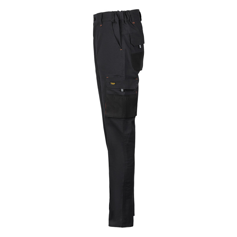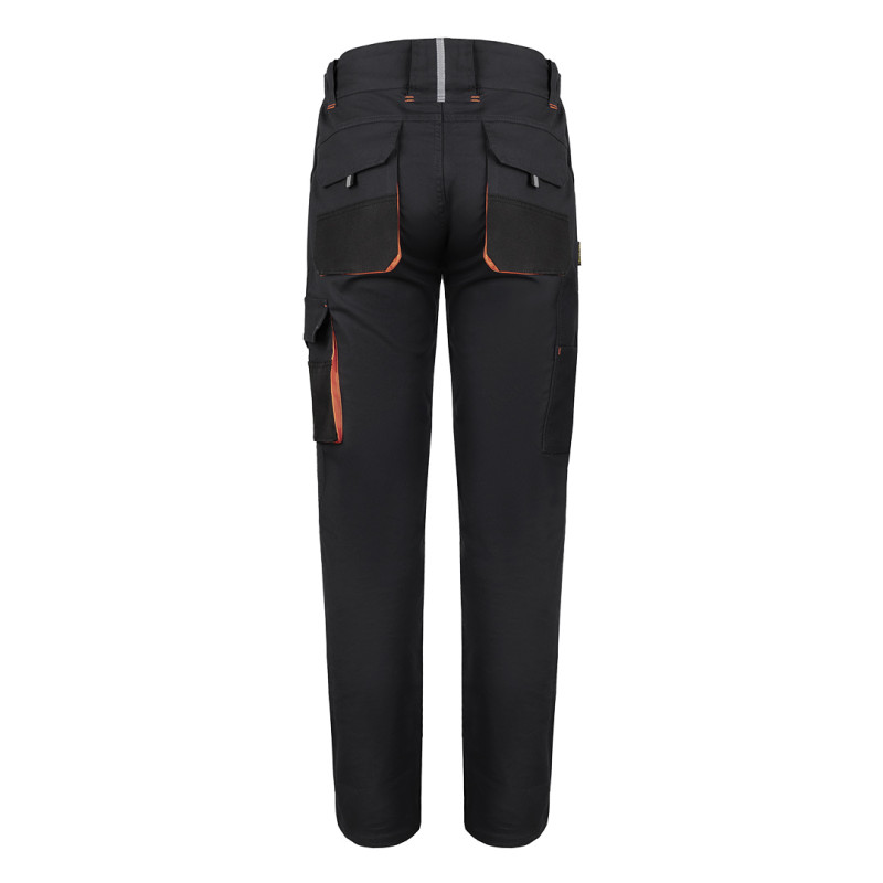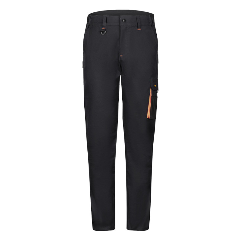 HAMMER STRETCH PANTS su radne pantalone sa elastinom, namenjene profesionalnoj upotrebi u industriji, servisu, logistici i zanatskim delatnostima gde su potrebni udobnost, sloboda pokreta i pouzdana izdržljivost. Izrađene su od platna gramature 260 g/m², u sastavu 59% pamuk, 39% poliester i 2% elastin, što obezbeđuje optimalan balans između čvrstoće, fleksibilnosti i prijatnog osećaja tokom rada. Klasičan dizajn kombinovan je sa rastegljivim materijalom koji olakšava kretanje i rad u različitim položajima. Funkcionalan raspored džepova, delimično elastičan pojas i ojačani štepovi na opterećenim mestima doprinose dugotrajnosti i praktičnosti u svakodnevnoj upotrebi. Ključne karakteristike: Radne pantalone sa elastinom • Materijal: 59% pamuk, 39% poliester, 2% elastin • Gramatura: 260 g/m² • Elastična tkanina • Delimično elastičan pojas • Džepovi: 2 prednja + 2 zadnja + 2 bočna • Multifunkcionalni odeljci za alat • Plastični D-prsten • Trostruki štepovi na kritičnim zonama • SAB rajsferšlusi