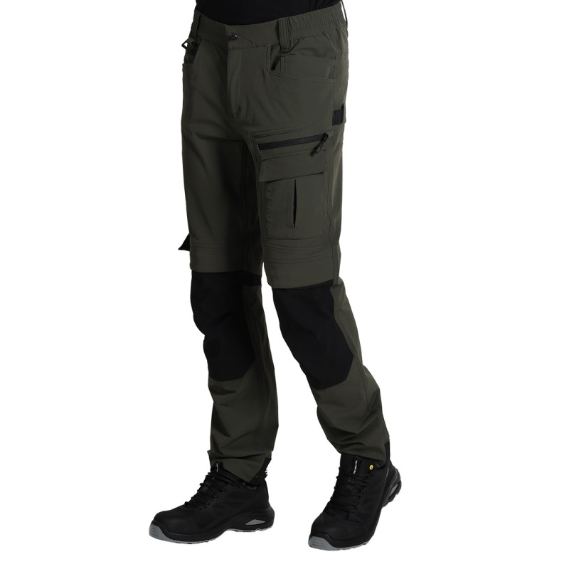 Savremen kroj sa čistim linijama daje pantalonama moderan i profesionalan izgled, čineći ih pogodnim i za nošenje van radnog okruženja. Produženi pojas na zadnjem delu poboljšava naleganje i stabilnost tokom saginjanja i kretanja. Dodatna ojačanja u zoni kolena i na zadnjem delu nogavica značajno povećavaju otpornost u zonama pojačanog opterećenja. Funkcionalan raspored džepova, trostruko ojačani šavovi i YKK rajsferšlusi garantuju pouzdanost i dugotrajnu upotrebu, dok reflektivni detalji diskretno poboljšavaju vidljivost.