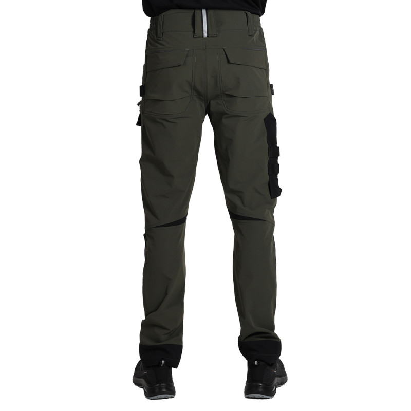 Premium radne pantalone • 92% najlon / 8% elastin • 260 g/m² • 4-way stretch tkanina • Visok nivo udobnosti i stabilnosti • Produženi pojas na zadnjem delu • Ojačanja na kolenima i zadnjem delu nogavica • Trostruko ojačani šavovi • YKK rajsferšlusi • Višestruki funkcionalni džepovi • Reflektivni detalji