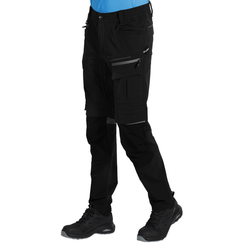 Radne pantalone PANTHER PANTS W deo su premium PANTHER linije, namenjene korisnicima koji zahtevaju viši nivo izdržljivosti, komfora i funkcionalnosti u zahtevnim radnim uslovima. Izrađene su od visokokvalitetne 4-way stretch najlonske tkanine veće gramature, koja obezbeđuje stabilnost, otpornost na habanje i dug vek trajanja, uz zadržanu elastičnost i slobodu pokreta. Savremen kroj sa čistim linijama daje pantalonama moderan i profesionalan izgled, čineći ih pogodnim i za nošenje van radnog okruženja. Produženi pojas na zadnjem delu poboljšava naleganje i stabilnost tokom saginjanja i kretanja. Dodatna ojačanja u zoni kolena i na zadnjem delu nogavica značajno povećavaju otpornost u zonama pojačanog opterećenja. Funkcionalan raspored džepova, trostruko ojačani šavovi i YKK rajsferšlusi garantuju pouzdanost i dugotrajnu upotrebu, dok reflektivni detalji diskretno poboljšavaju vidljivost. Ključne karakteristike: Premium radne pantalone • 92% najlon / 8% elastin • 260 g/m² • 4-way stretch tkanina • Visok nivo udobnosti i stabilnosti • Produženi pojas na zadnjem delu • Ojačanja na kolenima i zadnjem delu nogavica • Trostruko ojačani šavovi • YKK rajsferšlusi • Višestruki funkcionalni džepovi • Reflektivni detalji