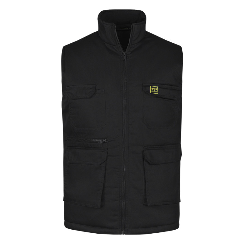 Radni prsluk • Spoljašnji materijal: 65% poliester, 35% pamuk • Postava: 100% poliester • Keper tkanina • Visoki okovratnik • Četiri prednja džepa sa preklopom • Dodatni džep sa rajsferšlusom • Centralno kopčanje rajsferšlusom • SAB rajsferšlusi • Pogodan za celodnevnu radnu upotrebu
