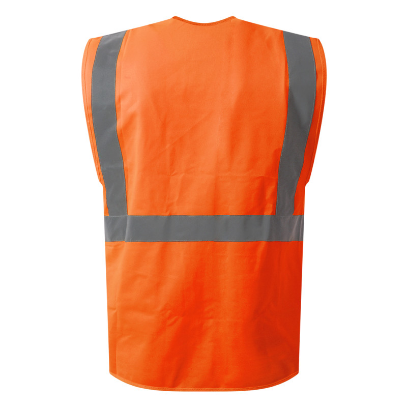 Fluorescentni sigurnosni prsluk • 100% poliester • Visoka vidljivost • Reflektivne trake (2 napred, 2 pozadi, 1 preko ramena) • Četiri prednja džepa • Džep za telefon i olovku • Plastični uložak za ID karticu • Gajke za ključeve i slušalice • Pogodan za saobraćaj, logistiku i skladišta