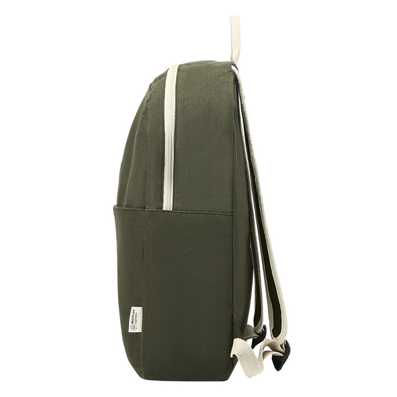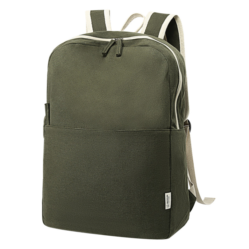 Materijal80% reciklirani pamuk i 20% reciklirani poliester • Gramatura: 280 g/m2 • Klasičan urban dizajn • Jedan glavni odeljak • Prednji džep sa rajsferšlusom • Podesive naramenice • Prirodna color paleta • OEKO-TEX sertifikat • GRS sertifikat • FAIRTRADE sertifikat • Pogodan za eco brendiranje i promotivne kampanje Materijal: reciklirani pamuk i reciklirani poliester