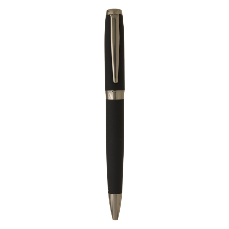 mesing • Twist mehanizam • TC kuglica 0,7 mm • Plavo mastilo • Soft touch telo • Sjajni tamno-metalni delovi • Papirna poklon tuba • Idealna za poslovne poklone i promotivnu upotrebu Boja mastila: plava