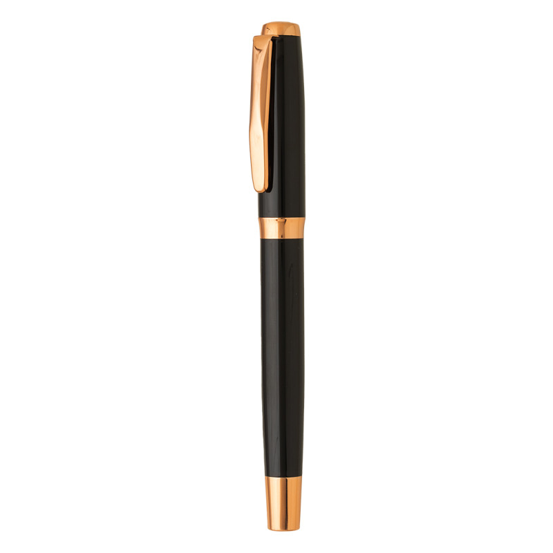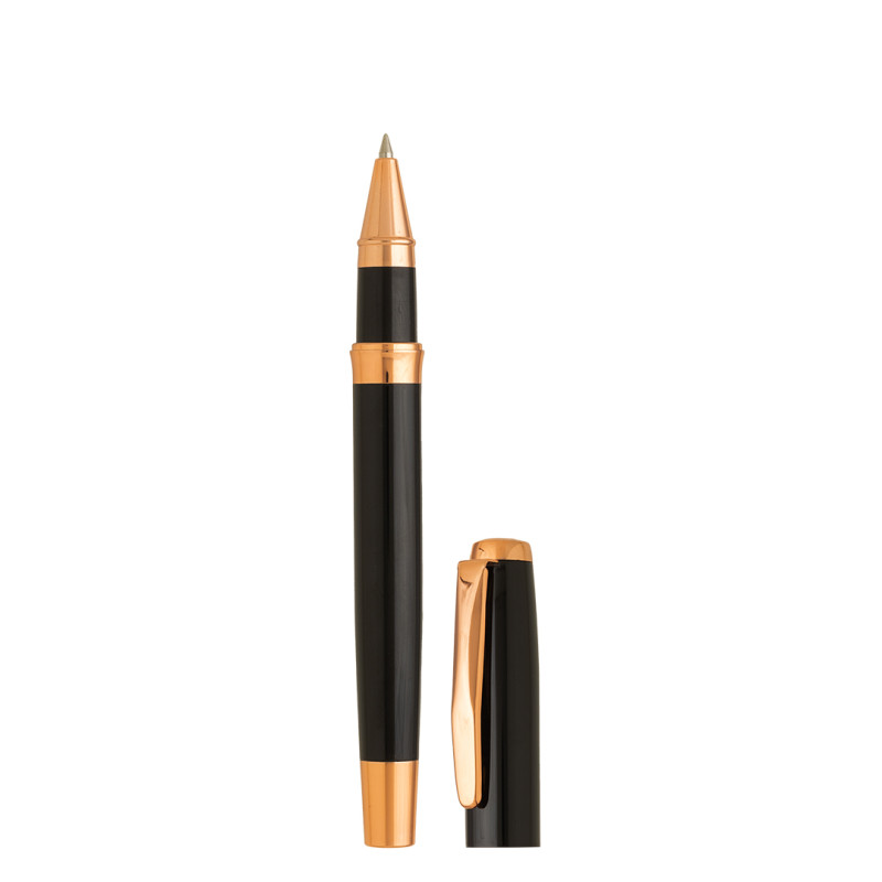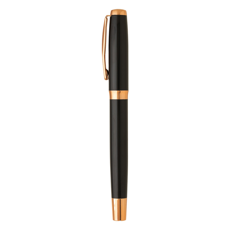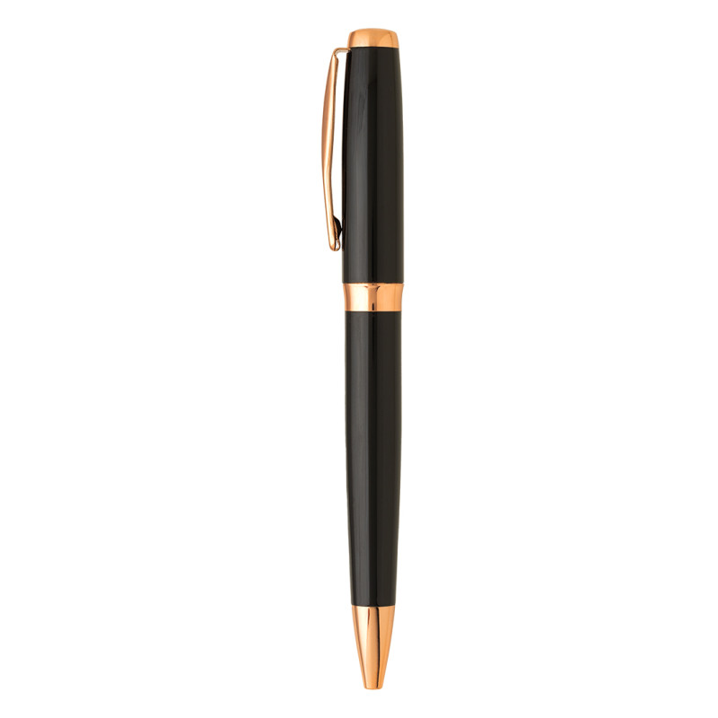 Set hemijske i roler olovke • Materijal: mesing • Twist mehanizam • TC kuglica 0,7 mm (hemijska) • TC kuglica 0,5 mm (roler) • Plavo mastilo • Sjajna završna obrada sa hromiranom podlogom gornjeg dela • Sjajni detalji u boji ružičastog zlata • Luksuzna poklon kutija • Idealno za premium poslovne poklone