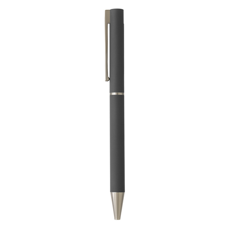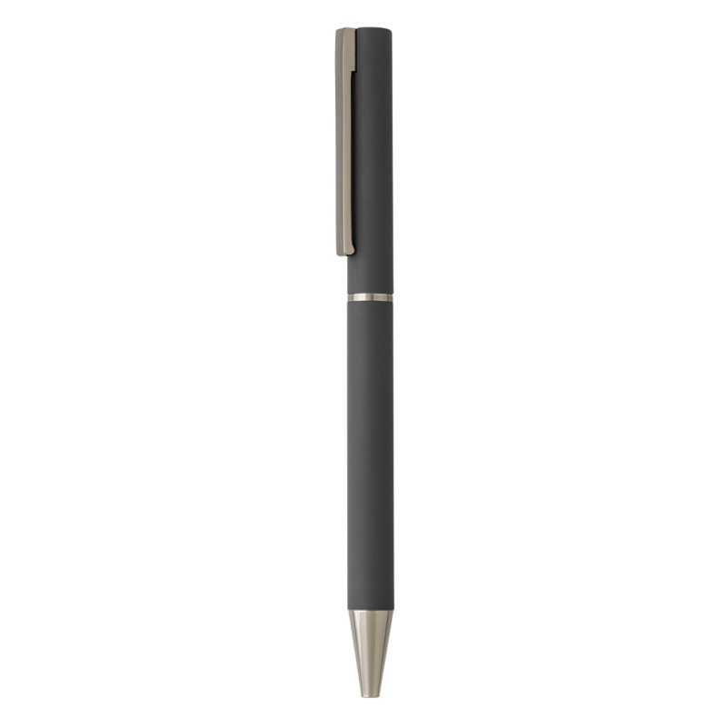 Materijalmesing • Twist mehanizam • TC kuglica 0,7 mm • Plavo mastilo • Soft touch telo sa hromiranom podlogom gornjeg dela • Sjajni tamno-metalni delovi • Papirna navlaka za
