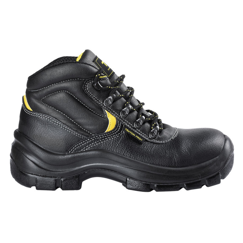 Zaštitna radna cipela • Gornji materijal: pigmentirana prirodna koža • HK3 paropropusna postava • Čelična zaštitna kapa (200 J) • Čelični međuđon • Uložak Giove • Đon: poliuretan (AM PU) • Otpornost na ulja i goriva (FO) • Otpornost na klizanje (SRC) • Stabilizacija skočnog zgloba • Nivo zaštite: S3 FO SRC • Standard: EN ISO 20345 • CE sertifikat • Brend: Tekton Pro • Proizvedeno u Italiji
