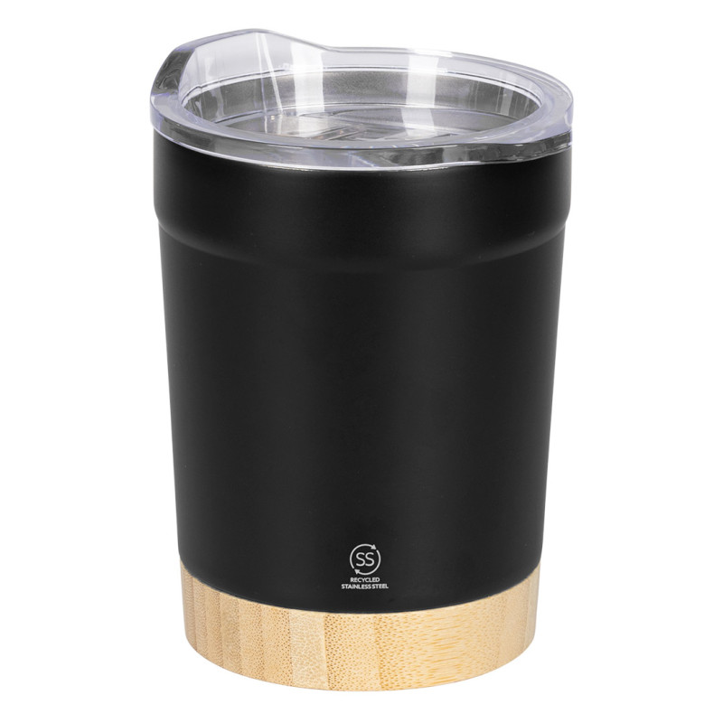 Materijalreciklirani nerđajući čelik • Kapacitet: 300 ml • Dvostruki zid sa vakuum izolacijom • Performanse: Termoizolacija do 12 sati (toplo/hladno) • Dno od bambusa • Nepropustan plastični čep • Nije pogodno za pranje u mašini za sudove • Nije pogodno za upotrebu u mikrotalasnoj pećnici • Poklon