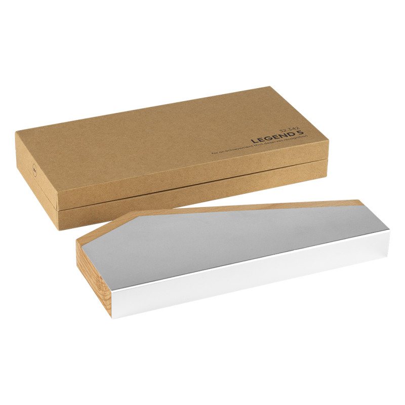 LEGEND 5 je model iz naše kolekcije trofeja izrađen od drveta i recikliranog aluminijuma, sa modernim oblikom koji spaja kvalitet i ekološku održivost. Dizajniran da ostavi snažan vizuelni utisak, predstavlja idealan izbor za nagrade na takmičenjima, priznanja na događajima ili kao korporativni poklon. Proizvod se može personalizovati laserskom gravurom, a dolazi u poklon kutiji koja dodatno ističe njegov premium karakter.