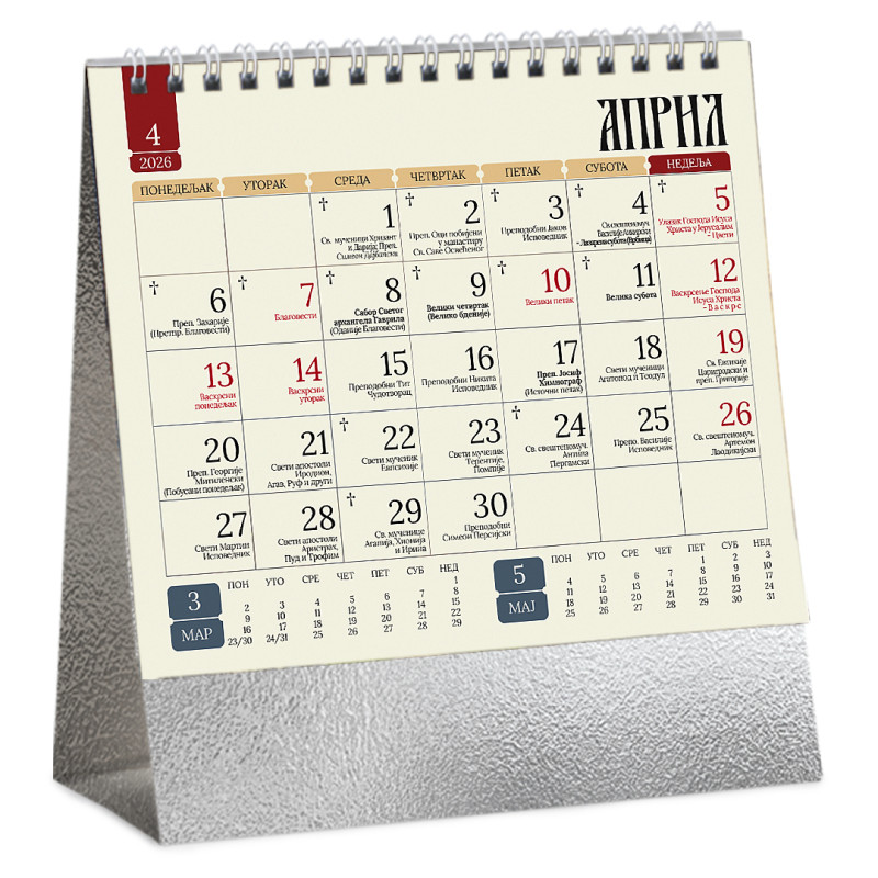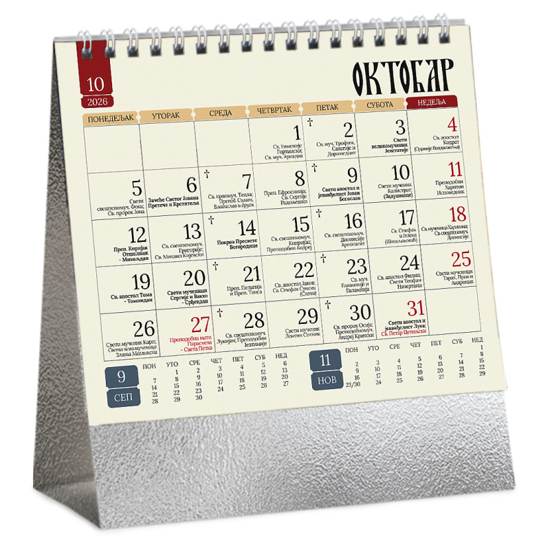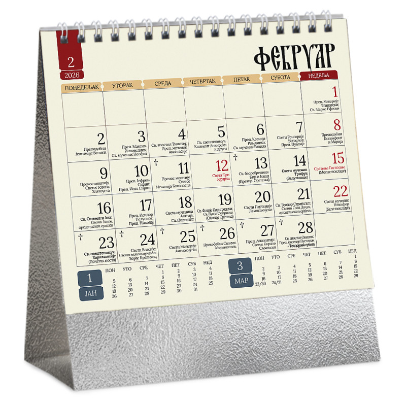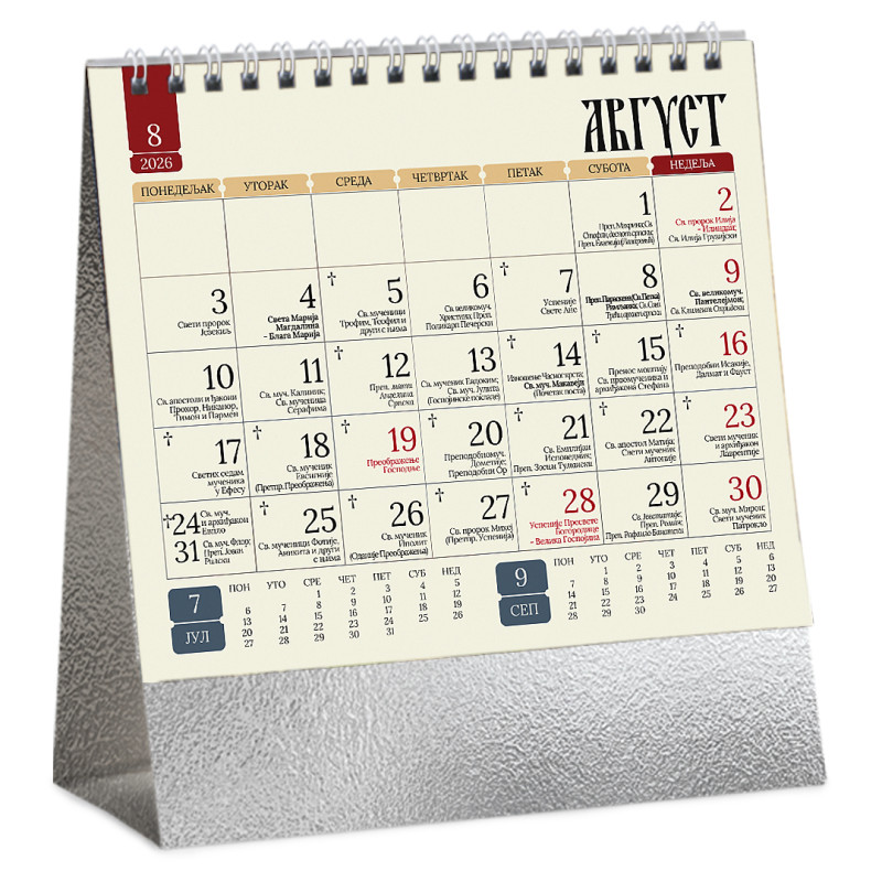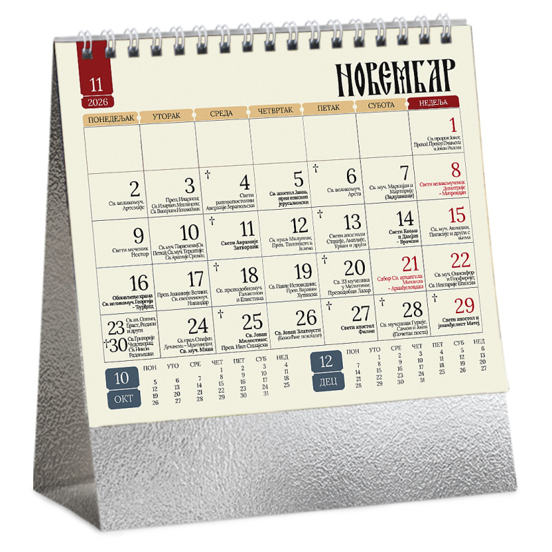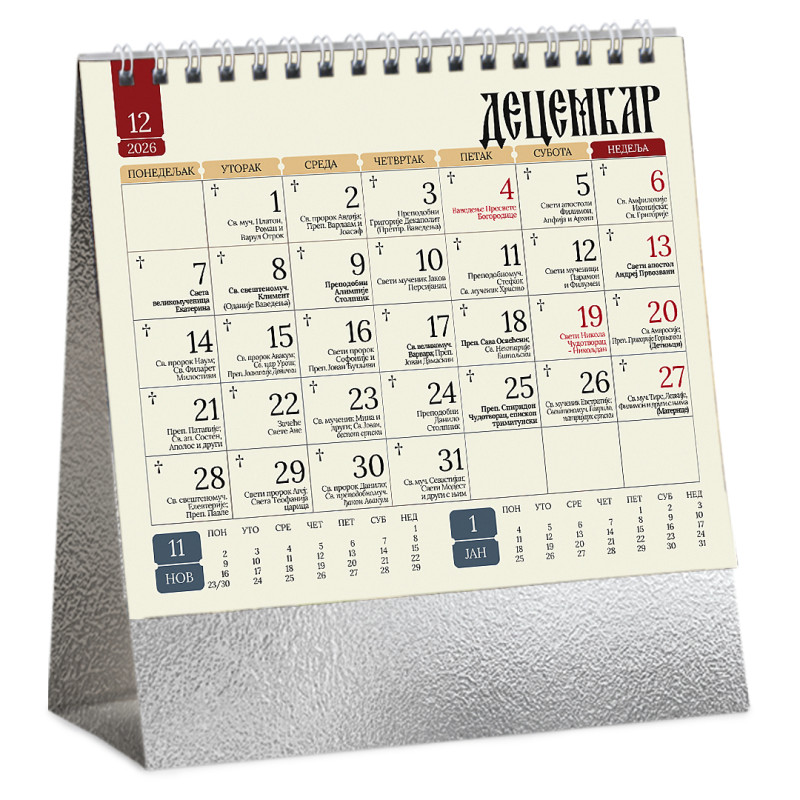 Stoni kalendar: 14 listova, mesečni, sa zlatotiskom na predlistu