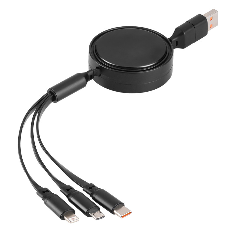 Materijalplastika, aluminijum • Dužina kabla: 1,2 m • Tip kabla: uvlačeći (automatsko uvlačenje) • Ulaz: USB-A/Type-C • Izlazi: Micro-USB, Lightning, Type-C • Snaga punjenja: do 60 W (Type-C/Type-C) • PD (Power Delivery) funkcija • Funkcije: punjenje i prenos podataka • Kompatibilno sa uređajima: pomoćne baterije, mobilni telefoni, tableti, laptopovi • Poklon