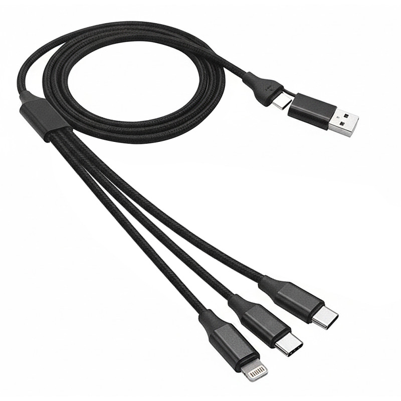 Materijalaluminijum, najlon • Dužina kabla: 1,2 m • Ulaz: USB-A/Type-C • Izlazi: Micro-USB, Lightning, Type-C • Snaga punjenja: do 60 W (Type-C/Type-C) • PD (Power Delivery) funkcija • Funkcije: punjenje i prenos podataka • Kompatibilno sa uređajima: pomoćne baterije, mobilni telefoni, tableti, laptopovi • Poklon