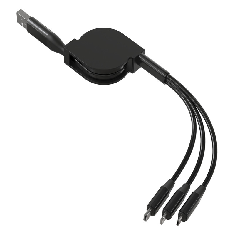 | Materijal | plastika, aluminijum • Dužina kabla: 1 m • Tip kabla: uvlačeći (automatsko uvlačenje) • Ulaz: USB-A/Type-C • Izlazi: Micro-USB, Lightning, Type-C • Snaga punjenja: do 60 W (Type-C/Type-C) • Funkcije: punjenje i prenos podataka • Poklon |