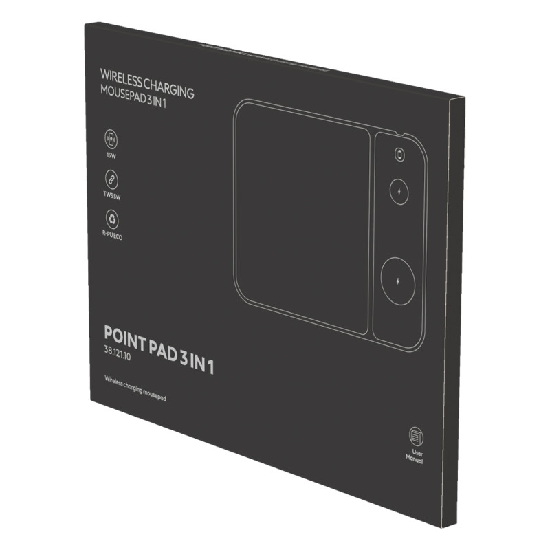POINT PAD 3IN1 je praktična podloga za kompjuterskog miša sa integrisanim bežičnim punjačem snage 15W, namenjena savremenom radnom i poslovnom okruženju. Zahvaljujući magnetnom sistemu, omogućava bežično punjenje telefona, slušalica i Apple sata, čime objedinjuje više funkcija u jednom kompaktnom rešenju. Izrađena je od kvalitetne eko kože koja pruža prijatan osećaj pri radu i doprinosi urednom izgledu radnog prostora. Proizvod je pakovan u crnu poklon kutiju i predstavlja praktičan promotivni proizvod i poslovni poklon pogodan za brendiranje.