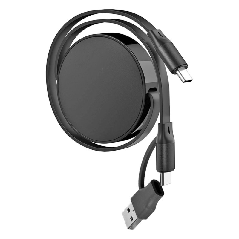 Materijalaluminijum, plastika • Dužina kabla: 1 m • Tip kabla: uvlačeći (automatsko uvlačenje) • Ulaz: USB-A/Type-C • Izlaz: Type-C • Snaga punjenja: do 240 W (Type-C/Type-C) • PD (Power Delivery) funkcija • Funkcije: punjenje i prenos podataka • Kompatibilno sa uređajima: pomoćne baterije, mobilni telefoni, tableti, laptopovi, računari • Poklon