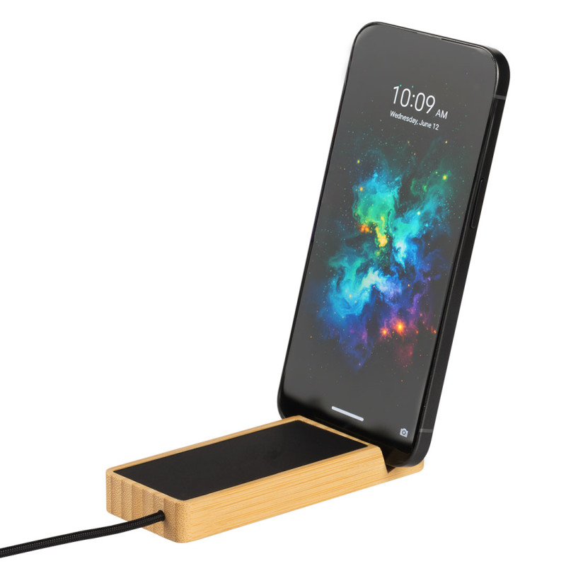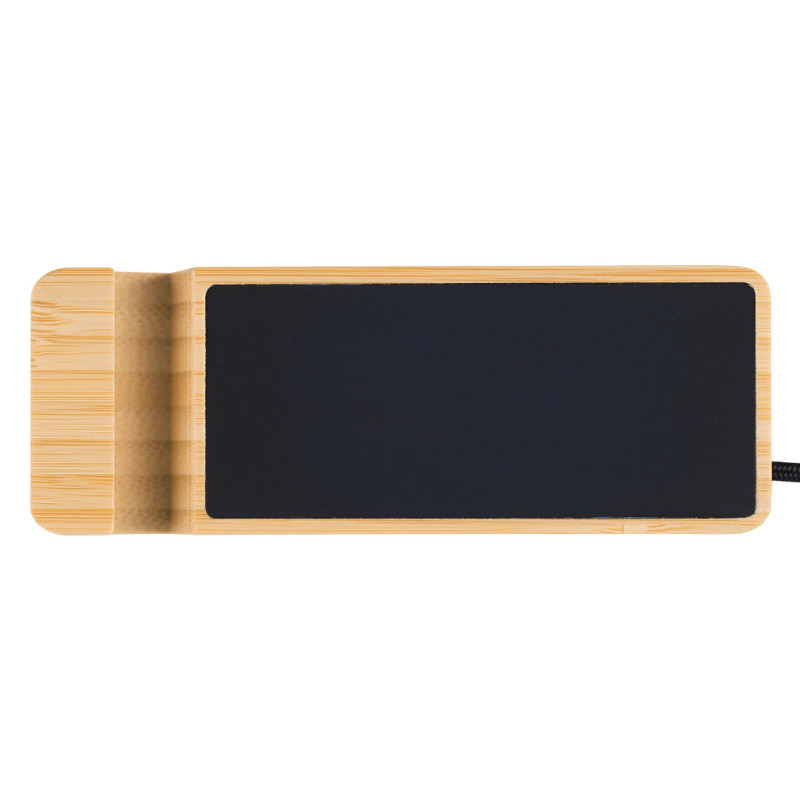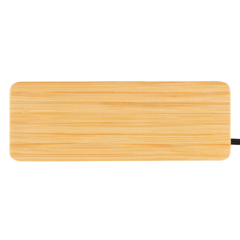 USB razdelnik sa tri ulaza i integrisanim držačem za telefon, dizajniran za radne stolove i promotivne primene. Kućište od bambusa daje prirodan i uredan izgled, dok svetleći logotip omogućava snažan vizuelni efekat brendiranja prilikom korišćenja uređaja. Kombinacija funkcionalnosti i vidljivog logotipa čini ovaj USB razdelnik pogodnim za kancelarije, sajmove i poslovne poklone. Isporučuje se u poklon kutiji.