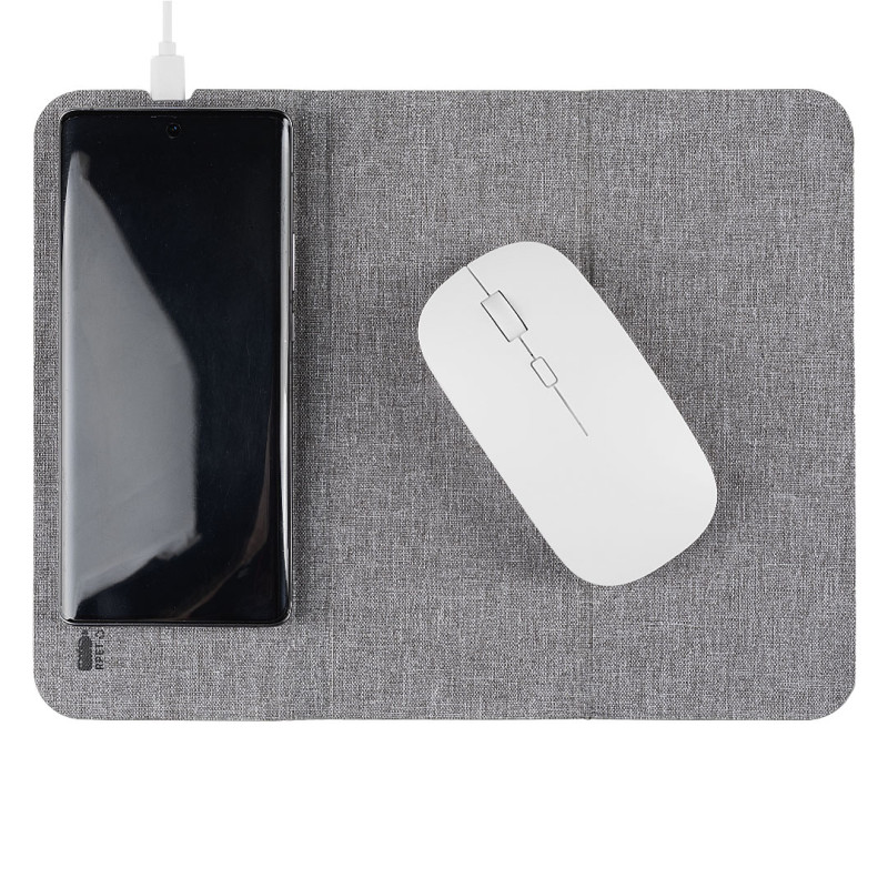 Podloga za kompjuterskog miša • Bežični punjač 15W • Materijal: RPET • Sklopiva konstrukcija • Prenosivi dizajn • Pakovano u kutiju • Pogodno za brendiranje