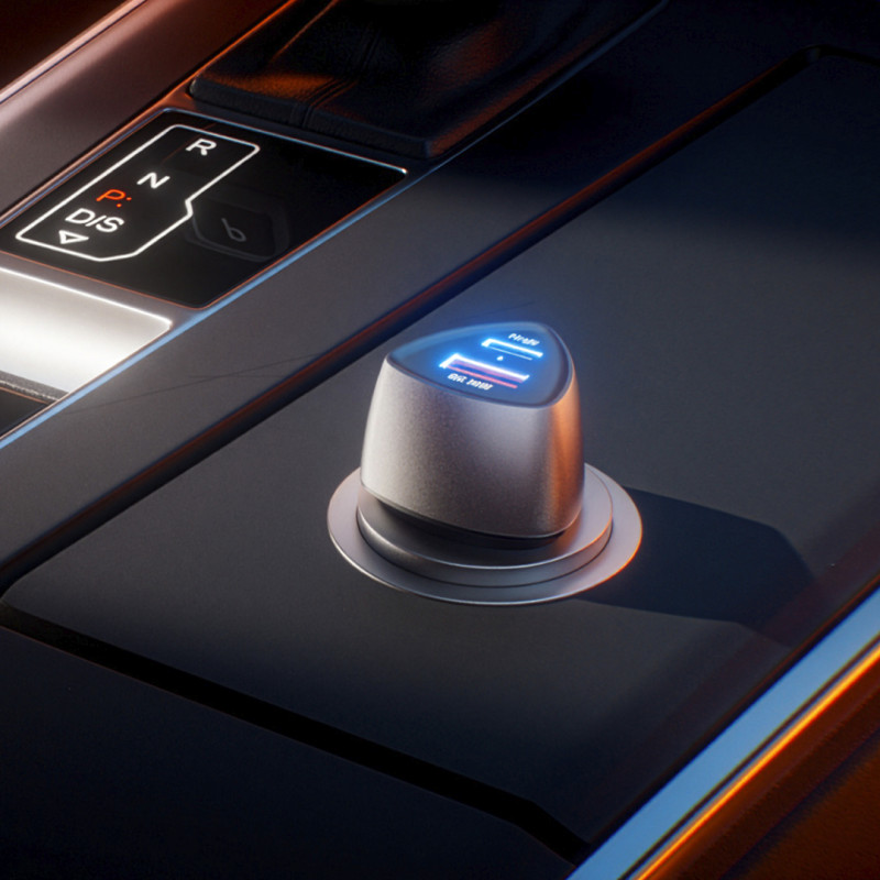 Punjač mobilnih uređaja namenjen upotrebi u automobilima i kamionima, sa ukupnom izlaznom snagom do 51W. Opremljen je USB-A i USB-C izlazima koji podržavaju različite režime brzog punjenja, uključujući PD, PPS i QC standarde, omogućavajući efikasno punjenje više uređaja tokom vožnje. Ključne karakteristike: Punjač mobilnih uređaja za automobil • Ukupna izlazna snaga do 51W • USB-A izlaz do 18W • USB-C izlaz do 30W • PPS izlaz do 33W • Podrška za PPS33W, PD30W i QC18W standarde • Ulazni napon 12–24V (kompatibilno sa automobilima i kamionima) • Poklon kutija