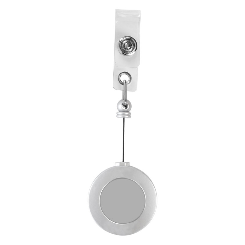 Držač za identifikacionu karticu sa povratnim (retraktilnim) mehanizmom koji omogućava izvlačenje i automatsko uvlačenje konopca. Praktično rešenje za brzo očitavanje kartice bez skidanja držača. Sa zadnje strane nalazi se metalna kopča koja omogućava sigurno pričvršćivanje za pojas, džep ili torbu.