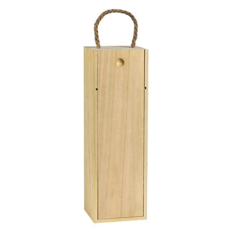BORDO drvena poklon kutija za flašu odlikuje se jednostavnim i klasičnim dizajnom, namenjenim pakovanju vina i drugih flaširanih pića. Izrađena je od drveta i koncipirana tako da istakne vrednost poklona kroz prirodan izgled i funkcionalnu konstrukciju. Kutija je opremljena kliznim mehanizmom koji omogućava jednostavno otvaranje, dok kanap na vrhu olakšava nošenje i transport. Zahvaljujući čistim linijama i praktičnoj formi, BORDO kutija predstavlja pogodno rešenje za vinske poklone, promocije i poslovne prilike. Površina kutije pogodna je za personalizaciju laserskom gravurom.