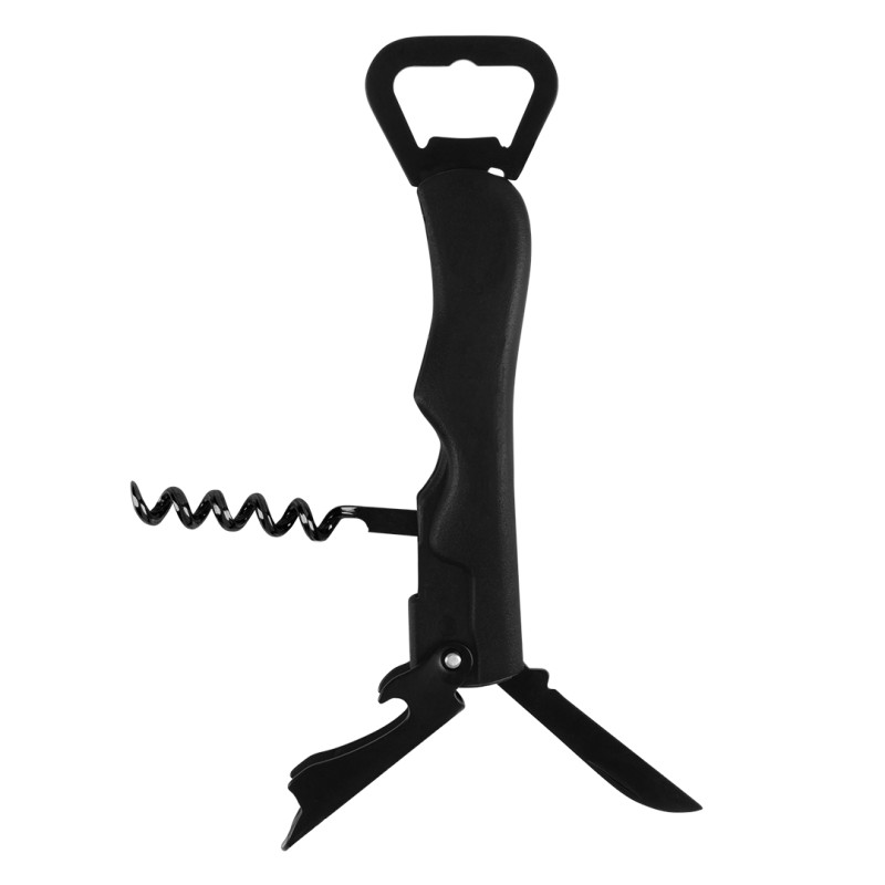 Materijalnerđajući čelik (alatke), plastika (drška) • Funkcije: otvarač za flaše, otvarač za čepove, nož, otvarač za vino • Mehanizam: sklopivi alati • Poklon